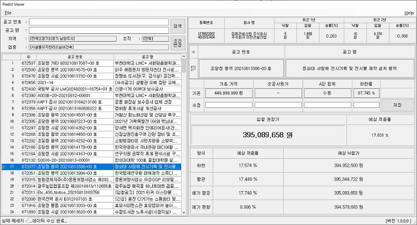 내용 : 입찰 건에 대한 낙찰 적정가 예측